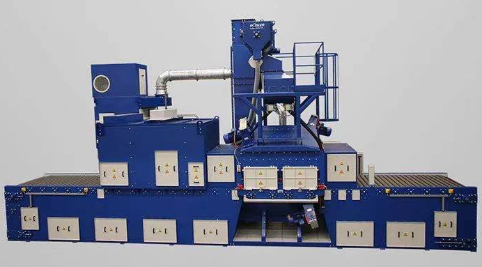 鑄件通過懸掛,軌道或滾子輸送到噴砂機室,工件連續(xù)旋轉(zhuǎn)并在室內(nèi)滾動。在拋丸機的清潔室周圍安裝了布局合理的噴砂機,噴砂機可以加速金屬彈丸的拋射。通過強烈的金屬彈丸沖擊,可以有效地清除砂子和拋光,同時可以對有缺陷部件的鑄件進行篩分,并提前暴露氣孔,避免后期潛在的安全隱患。以上是總結(jié)的使用拋丸機進行表面無損檢測的原理。
