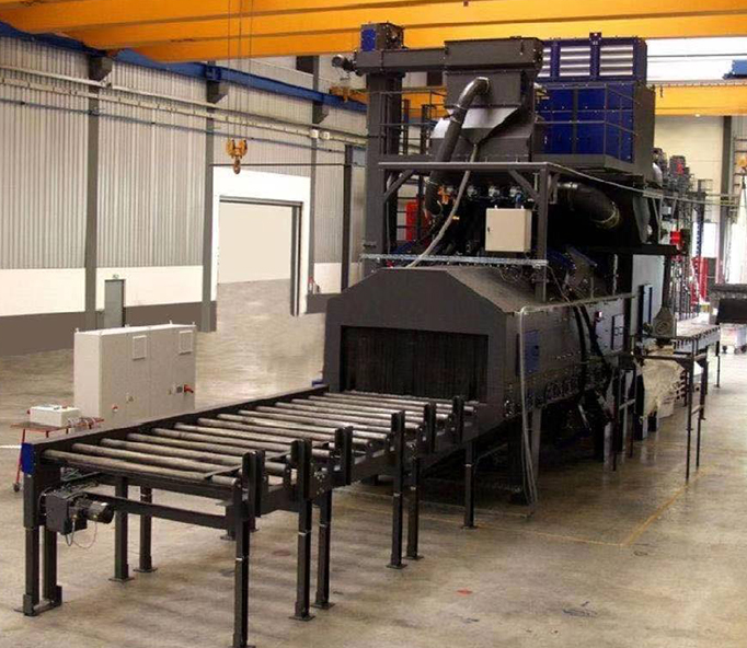 鋼結(jié)構(gòu)軌道通過式拋丸清理機(jī)應(yīng)用于多個(gè)行業(yè),能夠有效的幫助工件去掉焊渣,清理一些邊毛刺等,這些功能使需要處理的工件表面變得更加的光滑,并且這種光滑均勻呈現(xiàn),保持了較好的表面美觀度。 并達(dá)到提高整個(gè)工件表面及內(nèi)在質(zhì)量的目的,已完成客戶的心里目標(biāo)。