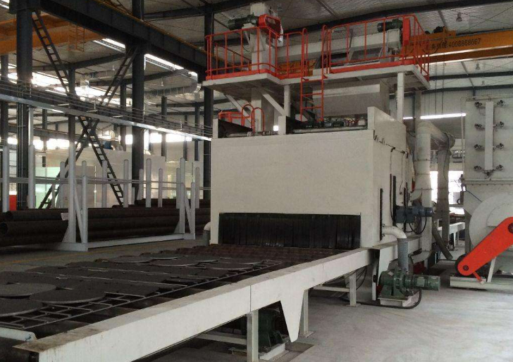 落入鋼材上面的彈丸與銹塵經(jīng)吹掃裝置吹掃,撒落下來的丸塵混合物由回收螺旋輸送到室體漏斗、縱橫向螺旋輸送機匯集于提升機下部再提升到機器上部的分離器里,分離后的純凈彈丸落入分離器料斗中內(nèi),供拋丸循環(huán)使用。通過式拋丸機拋丸清理中產(chǎn)生塵埃,由抽風(fēng)管送向除塵系統(tǒng),凈化處理后的凈氣排放到大氣中,顆粒狀塵埃被捕捉收集通過式拋丸機主要用于建筑、橋梁等行業(yè)用大型工字型鋼、等較高的鋼結(jié)構(gòu)件消除應(yīng)力及表面除銹清理。