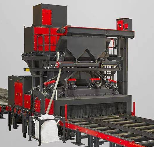 爬架清理機(jī)一般采用通過(guò)式拋丸清理,輥道輸送將爬架往拋丸清理室內(nèi)輸送一邊拋丸一邊往拋丸清理室外輸送,整個(gè)工作過(guò)程無(wú)死角。爬架清理機(jī)的工作原理如下: