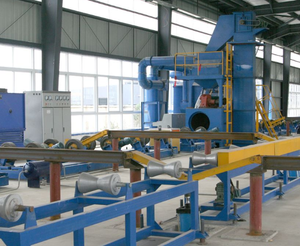 鋼管內(nèi)外壁拋丸清理機(jī)適用于大、中型鋼管的表面清理和強(qiáng)化。經(jīng)過清理后的鋼管呈現(xiàn)銀白色的金屬光澤,其表面抗拉、抗壓強(qiáng)度提高。本機(jī)為通過式,輥道連續(xù)輸送工件,邊移動(dòng)邊旋轉(zhuǎn),不需人工上料,生產(chǎn)效率高,清理效果好。鋼管內(nèi)外壁專用拋丸清理機(jī)適用于鋼管及鋼管類產(chǎn)品的表面處理,去除其表面氧化皮,焊渣等雜物,呈現(xiàn)出金屬光澤,增加其表皮面積,以利于工件表面的噴涂及涂敷廣泛應(yīng)用于石油化工、鋼鐵、城市集中供熱、供排水等行業(yè)。