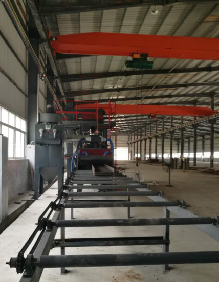 輥道通過式拋丸機(jī)主要由預(yù)熱、拋丸處理、噴漆烘干工序組成。適用于船舶、汽車、機(jī)車車輛、橋梁、機(jī)械等行業(yè)的鋼板、型材及結(jié)構(gòu)件的表面除銹、涂漆工藝。通過拋丸機(jī)清理過程中由電氣控制的可調(diào)速輸送輥道將鋼結(jié)構(gòu)件或鋼材送進(jìn)清理機(jī)室體內(nèi)拋射區(qū),其周身各面受到來自不同坐標(biāo)方位的強(qiáng)力密集彈丸打擊與磨擦,使之其上的氧化皮、銹層及其污物迅速脫落,鋼材表面就獲得一定粗糙度的光潔表面,在清理室外兩邊進(jìn)出口輥道裝卸工件。質(zhì)量再好的拋丸機(jī)也有一定的使用壽命,在使用過程中會有大大小小的故障。拋丸機(jī)故障根據(jù)故障發(fā)生的時間,可分為漸進(jìn)性故障、突發(fā)性故障和復(fù)合性故障。